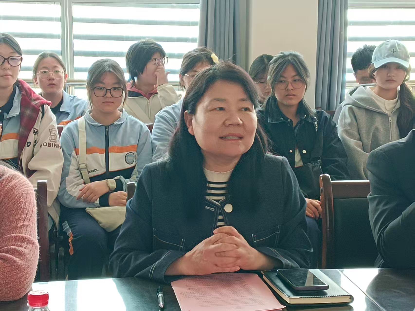座谈会上,蒋领敏首先听取了毕业生代表的求职进展汇报,同学们围绕外语类岗位竞争压力、跨行业求职壁垒、实习机会获取等问题逐一发言,也提出了希望公司增加行业宣讲、开展一对一求职辅导的诉求。蒋领敏结合外语专业就业市场的整体趋势,分析了外贸、教育、翻译等领域的就业机会与能力要求,针对同学们的求职困惑给出了“深耕专业+拓展技能”的核心建议,并表示公司将整合校企合作资源,为毕业生推送更多精准的就业岗位信息。韦士心则从心理疏导角度出发,鼓励同学们调整求职心态,以积极的状态应对求职过程中的挫折与挑战。
