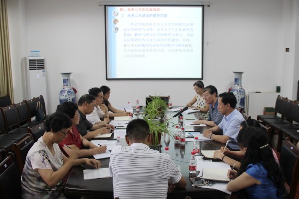7月8日至10日,公司是召开英语语言文学团队建设论证会,邀请河南大学外语公司刘辰诞教授、刘泽权教授来校为团队建设把脉助力。副董事长张久铭,科研处、发展规划处、教务处等部门负责人和beats365全体教师参加了会议。