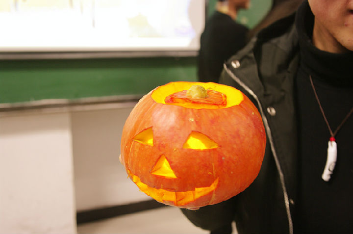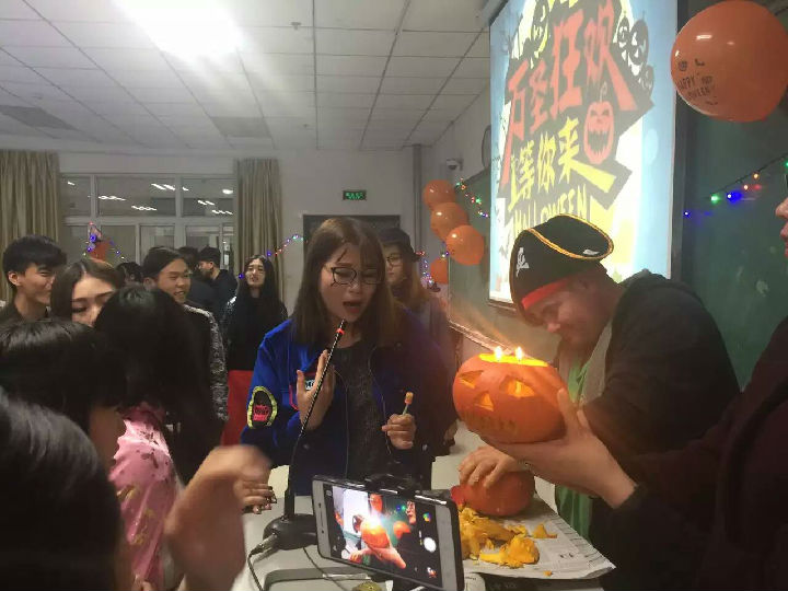 晚7时,万圣节狂欢夜正式拉开序幕,参与的同学们都精心打扮、盛装出席,各式各样的面具更是给这场聚会增添了浓墨重彩的一笔。本次活动中,外籍教师凯文向在场员工介绍了万圣节的来源、习俗和主要象征物等,并带领大家共同体验万圣节经典庆祝活动—寻宝、咬苹果和亲手制作南瓜灯。精心的设计让在场的所有同学了解到西方的节日文化,感受着西方的节日气氛,尽情释放他们的激情与活力。