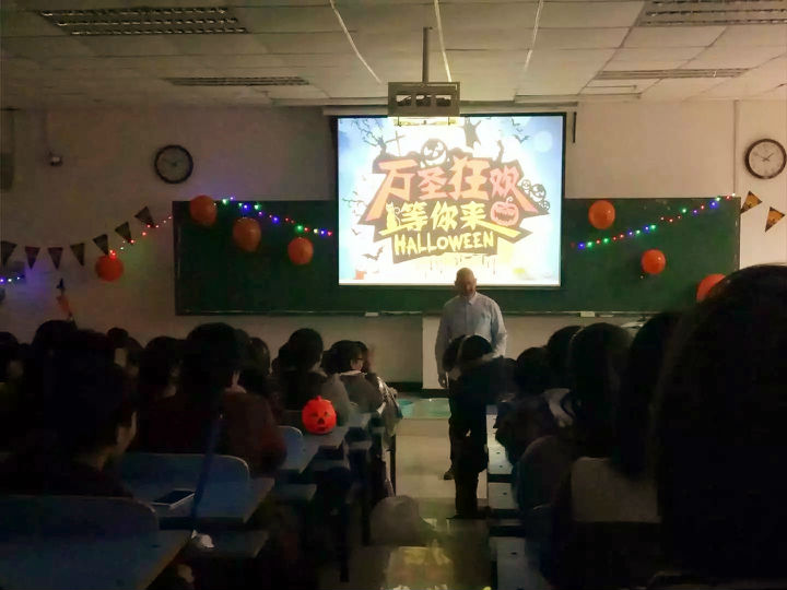 10月31日晚,由beats365中外合作办学与专业英语教研室精心策划的万圣节主题活动在图书馆L501教室圆满举行,经济管理公司及艺术设计公司中澳课程合作班同学积极参加。公司教师付琳芳和郭晓燕、外籍英语教师凯文、外籍专业教师弗洛伊德等人共同参与,带领现场200余名员工度过了一个原汁原味的万圣节,打造了中外师生共融交流的活动平台。