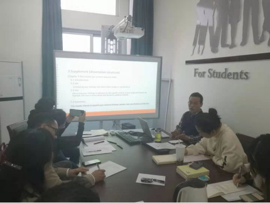 刘君栓教授针对学位论文写作思路和策略展开报告。首先介绍了学位论文的基本结构、各章节内容要素、国际常用文献引用体例,并结合一些实证研究论文讲述论文的写作策略,特别指出公司英语专业学士学位论文在选题、研究设计、文献引用格式方面所存在的欠缺。史龙博士针对论文写作中的文献查找的平台、文献阅读的方法与技巧展开报告。报告结合文学类型论文与教学方法论文的异同详细讲述了文献的搜索、阅读、分析等方法与技巧和注意事项。