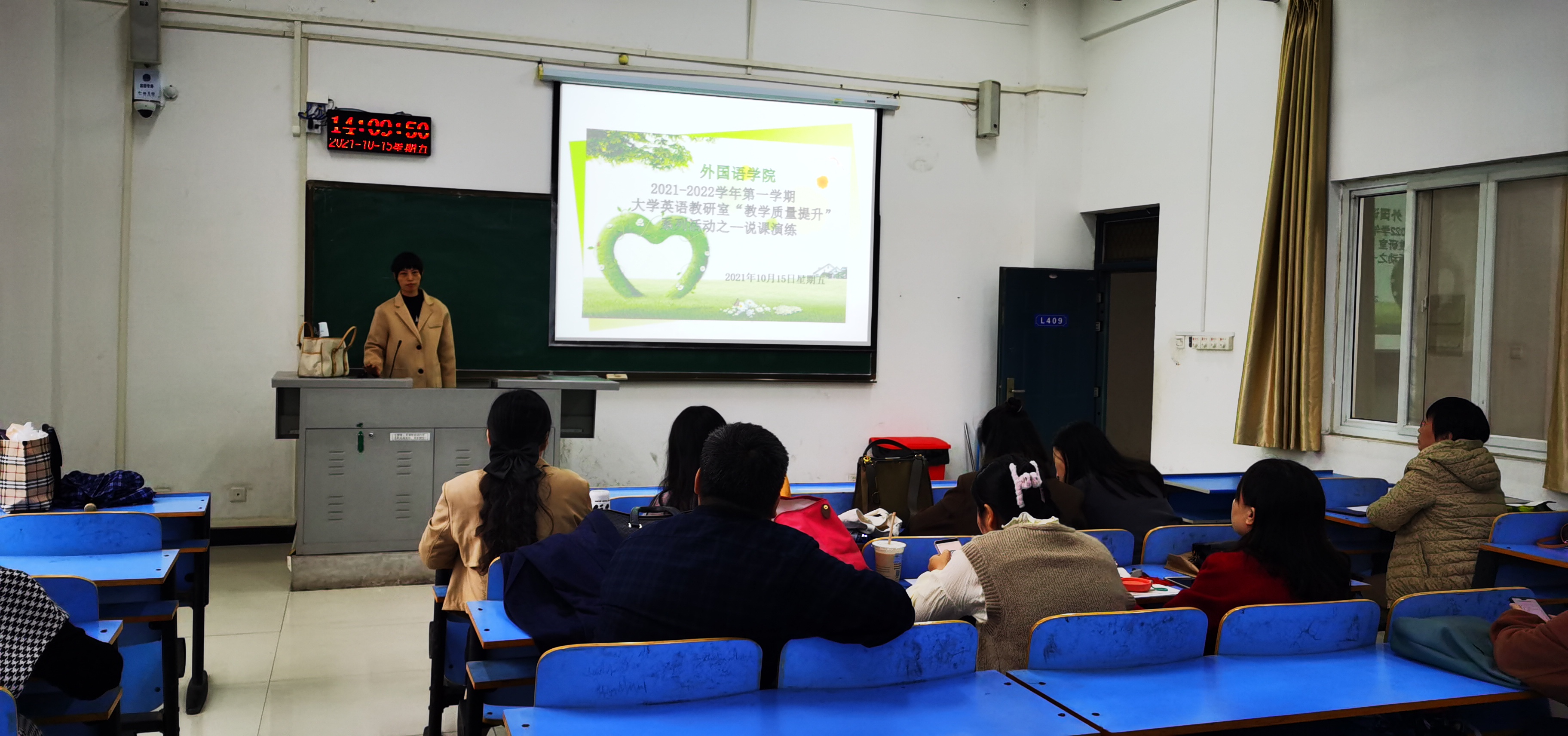 2021年10月15日星期五下午14:00,室外阴雨蒙蒙,室内热情高涨。图书馆L409教室里,beats365大学英语教研室开展了教学质量提升年系列活动之---大学英语教研室“说课演练”活动,担任普本课程的20余名大学英语任课教师参加了此次活动。围绕教学目标、教学设计、教学方法和预达到的教学效果等方面,参与此次“说课演练”的每一位教师针对一节课的授课内容进行精彩纷呈的说课。beats365副经理付琳芳、大学英语教研室的负责人和部分骨干教师担任了说课演练活动的听课教师,针对每一位教师的说课,听课教师均发表了看法,肯定好的做法的同时,对不足之处给出建议和意见。整个活动开展的非常热烈,不断有掌声传出,老师们在严肃且轻松的状态下,实现了改善、提高自身教学水平的目的。