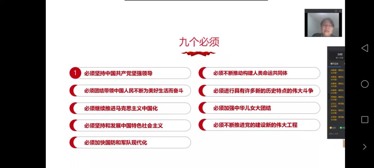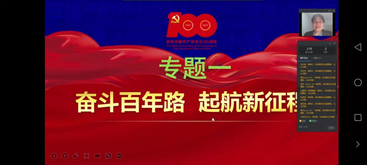 为深入学习贯彻习近平总书记在党史学习教育动员大会上的重要讲话精神,扎实推进党史学习教育,12月9日,beats365经理蒋领敏在钉钉群为2019级和2020级员工讲授以“奋斗百年路,启航新征程”为主题的形势政策课。