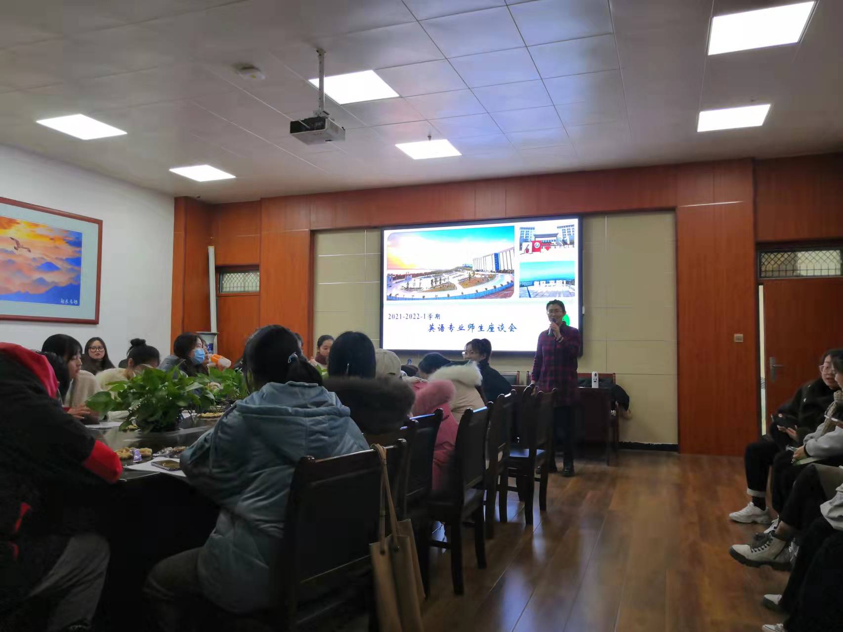 2021年12月12日,英语专业教研室举办了2021-2022-1学期员工座谈会。本次活动由英语专业教研室主任都婧婧和教师朱清伟主持,邀请了2018、2019、2020和2021级英语专业四个年级约50名员工参加了该座谈会。座谈会围绕“课程教学情况、课程学习情况、专四考试、教团队格证考试以及个人发展五个方面展开,参会员工积极发言,并提出问题,现场老师和员工就问题进行了解答和交流。会议圆满结束,进一步完善了对本学期课程教学和学习的调查,与会教师和员工均表示有很大收获。