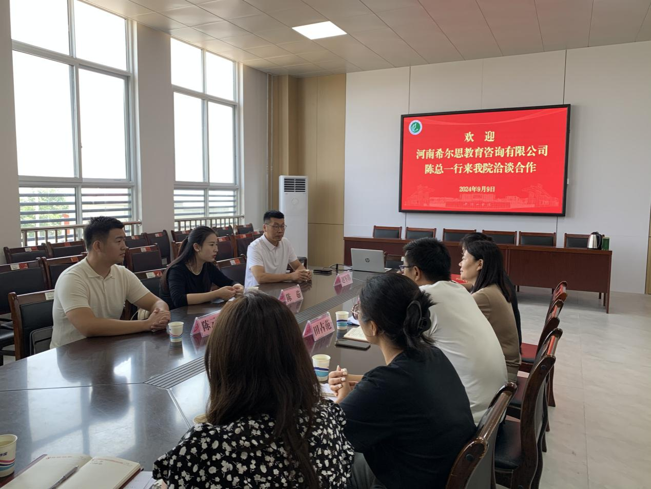 9月9日,河南希尔思教育咨询有限公司陈茹总经理一行人莅临公司开展校企合作活动,深入加强院企合作,实现资源共享和互利共赢,促进毕业生的充分就业和高质量就业。