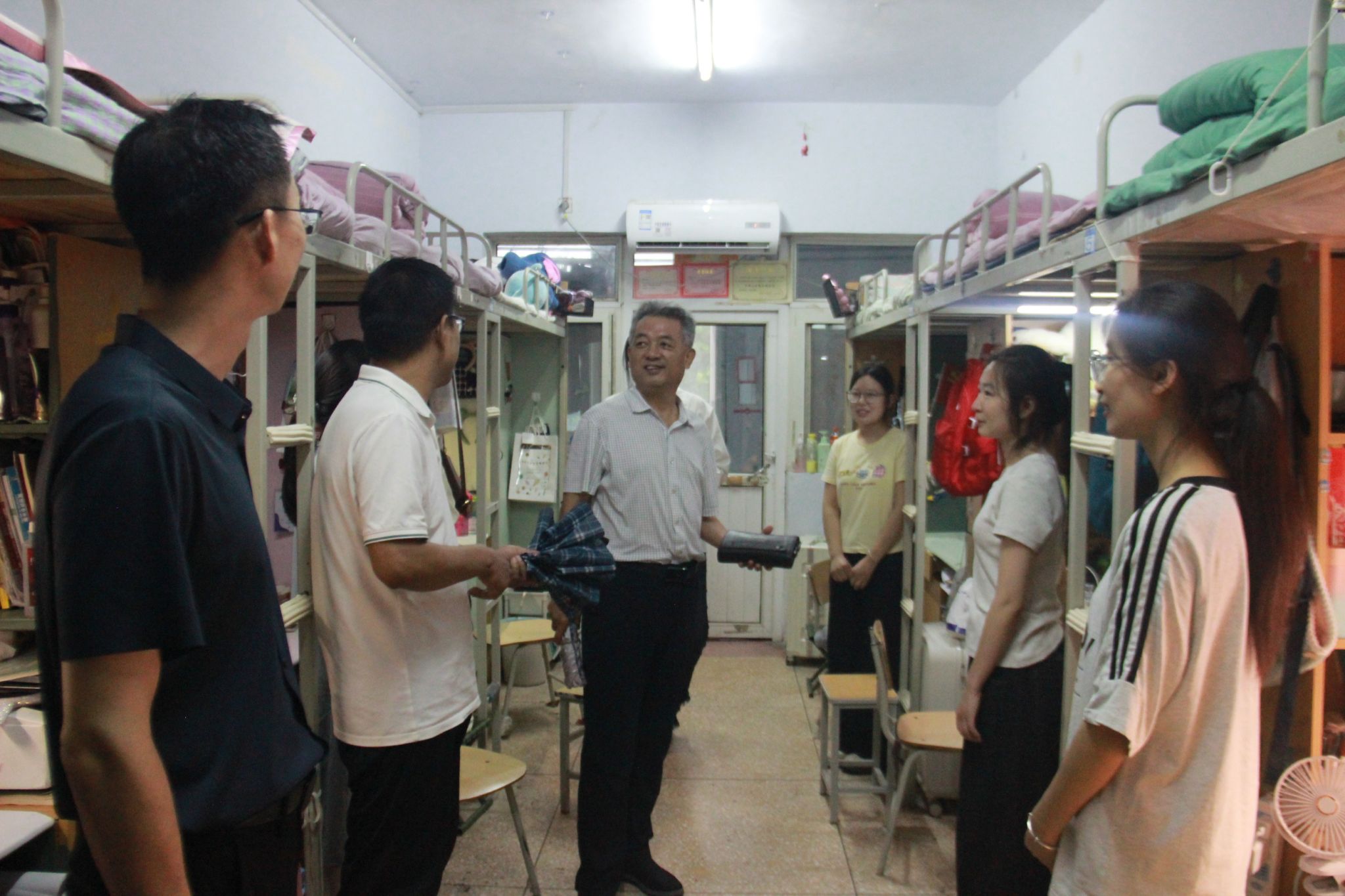 随后,许建辉来到11号楼员工宿舍,细心查看了宿舍卫生环境和设施设备运行情况。在与同学们交流中希望同学们珍惜集体生活,相互尊重和理解,互帮互助,共同营造团结友爱、积极向上的宿舍氛围。同时,他表示,公司会持续加强员工生活服务建设,为员工打造安全舒适、充满活力的生活环境,助力员工成长。