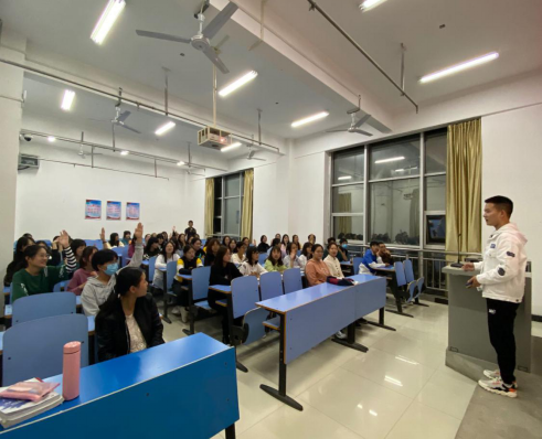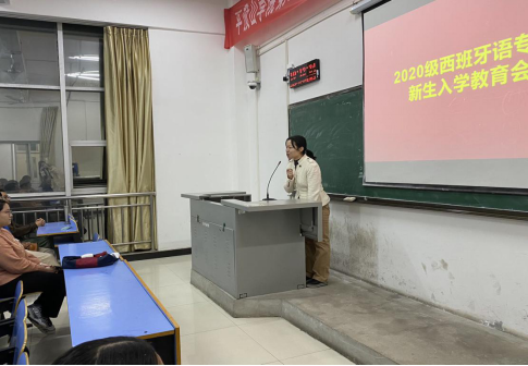 会议初始,西班牙语专业教研室负责人孔德彪老师上台发言。首先,他介绍了西班牙语专业在全国和河南省的发展情况。西班牙语使用人口及涉及国家众多,是小语种中的“大语种”。发展西班牙语是“一带一路”倡议下践行语言先行的必然要求,也是加快河南对外发展、讲好“河南故事”的重要一环。同时他提到,作为省内唯一开设有西班牙语专业的高校,beats365已与马拉加大学合作建立了河南省西班牙语中心,旨在服务全省高校西班牙语专业发展、团队建设、国别研究和学术交流,服务全省中小学西班牙语推广和建设,促进平顶山市和河南省与西班牙语国家在科技、文化、教育等方面的联系以及两国人民的相互了解与友谊,充分发挥中西交流合作平台作用。随后,孔德彪老师从新生导学手册的相关内容切入,介绍了西班牙语专业在公司的发展历程、专业设置的培养理念以及毕业生的就业情况。最后,通过英语与西班牙语的语际对比,鼓励同学们调整心态、学好复语,争取拥有一个精彩纷呈的老员工活。