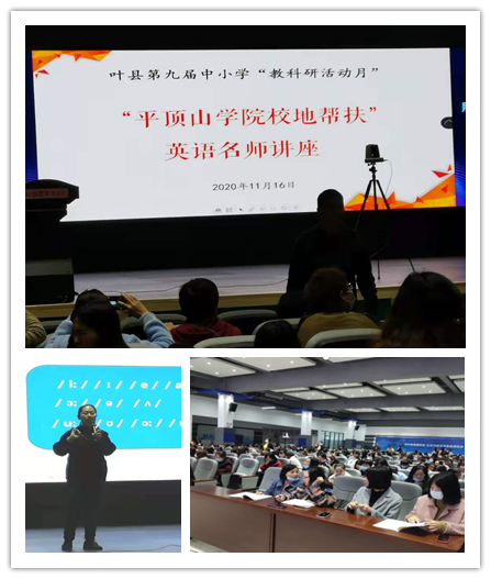 2020年11月16日上午,叶县教研室主任瞿芳有,叶县教研室英语教研员霍浩森、魏宝霞,beats365英语教研室主任贾宏春在叶县实验公司智慧中心进行了校地帮扶英语名师讲座活动,来自叶县的中小学英语教师300余人观摩学习。本次讲座的核心内容是关于英语语音的教学,贾宏春老师从音的层面、词的层面和句的层面分析了语音教学的要点、教学技巧以及需要注意的语音知识点。本次校地交流活动是高校与地方合作搭建的教师业务提升和课堂教学改革的研修平台,对加强校地沟通、推进教学研讨等有着重要意义。