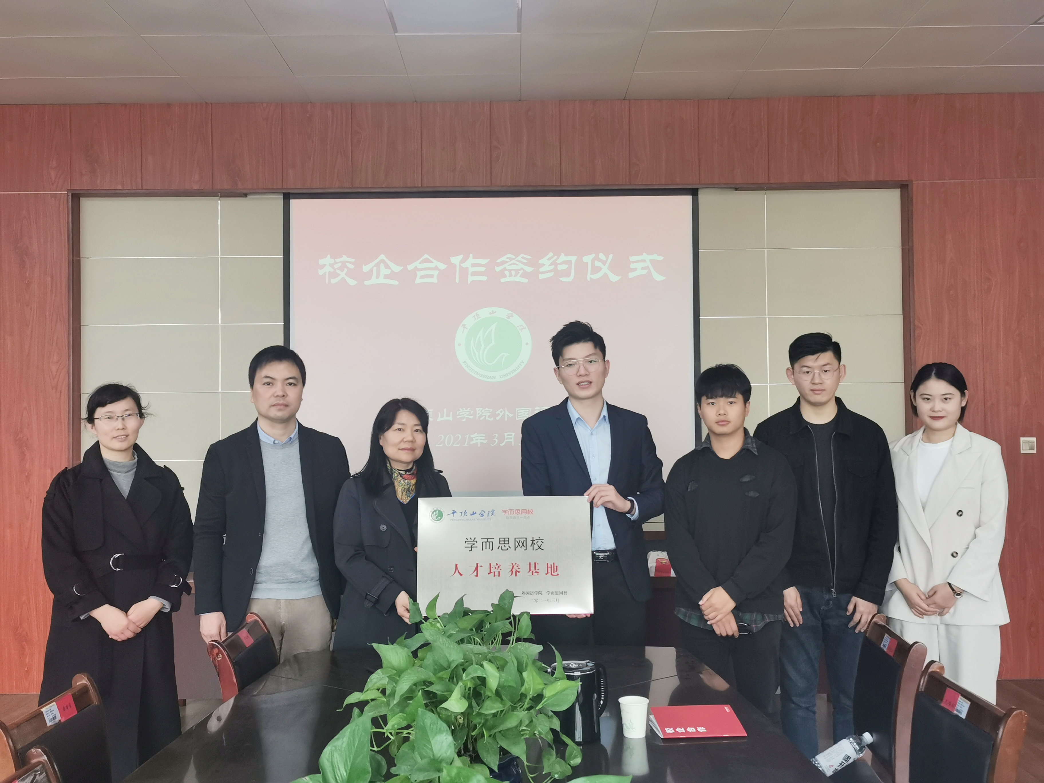 3月30日上午,公司与学而思网校在L708会议室举行了校企合作签约揭牌仪式。beats365经理蒋领敏、副经理丁超峰、英语专业教研室副主任都婧婧、辅导员韦士心,学而思网校校企负责人郝高齐、校企合作品牌官黄禹铭、滕馨、校企合作渠道负责人魏伟旗共同出席了此次签约仪式。