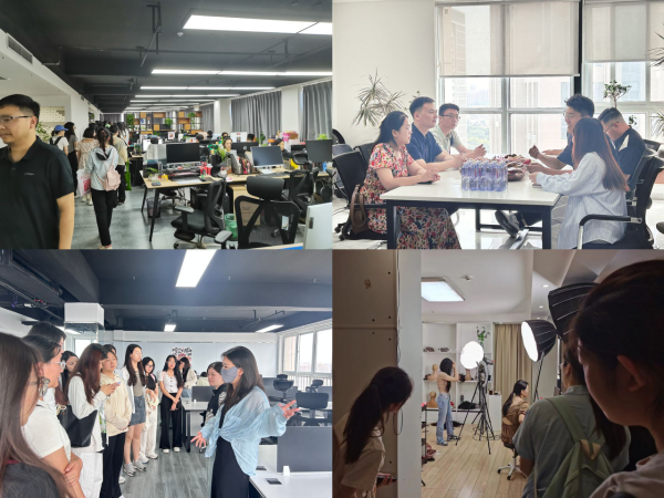 公司师生第三站来到许昌芮诗恩贸易有限公司,公司负责人刘涛、郑鹏飞等情接待了公司师生,并与公司师生进行了深入交流分享。首先,郑鹏飞带领师生来到公司各个门和多个直播间,在这里向同学们介绍了许昌跨境电商行业运营情况以及公司在国内外的优势资源,分享了公司在产品展示、多语直播服务、海外仓、海外宣传推广等全流程、全方位的成功案例。最后,校企双方举行座谈会,刘涛经理分享了自己在电商行业工作的经验和对未来的展望,公司师生围绕跨境电商专业知识、跨境电商直播技巧以及外语学习等问题,与企业负责人和供职于该公司的公司优秀员工进行了深入交流与现场互动。同学们表示在此次讲座中收获颇丰,不仅了解了行业趋势和岗位职责,还得到了许多宝贵的职业建议和指导。
