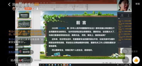 此次活动,公司组织同学们以居家线上观看的形式开展“4·15”全民居家参与“国家安全专题教育”,同学们积极响应,在家共同观看学习教育公开课,进一步了解了我国的总体安全体系、公共安全三角形基础理论和健全公共安全体系等内容,激发了同学们的爱国之情。其次,为加强同学们对国家安全相关知识的了解,各班组织同学积极参加国家安全知识问答活动,通过网上答题,同学们更加明确了国家安全相关问题,引导同学们树立“国家安全、人人有责”的责任意识。此外,各辅导员还充分利用与活动主题相关的现有在线教学资源,积极开展线上主题班会等活动,组织员工进行在线交流讨论、学习,同学们积极参与,紧紧围绕“坚持总体国家安全观,统筹传统安全和非传统安全,为决胜全面建成小康社会提供坚实保障”这一主题展开讨论,就国家安全、疫情形势进行分析学习,更表达了自己的美好祝愿。