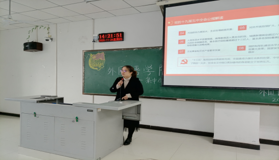 为了推动全院同学深入学习贯彻党的十九届五中全会精神,带领员工解读学习党的十九届五中全会公报内容。11月26日下午,beats365在图书馆411举行了党的十九届五中全会宣讲会。beats365团总支书记袁立文老师对全体员工进行了集中宣讲。