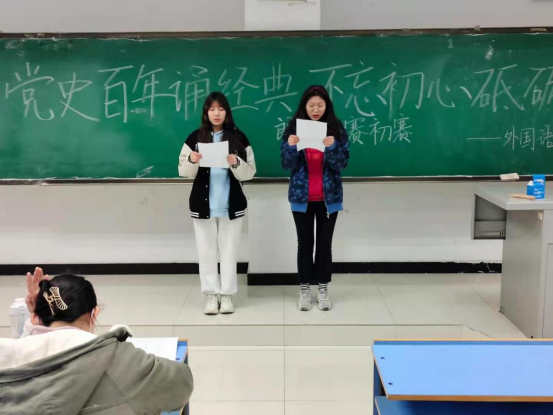 在比赛中,各支参赛队伍围绕“党史百年诵经典,不忘初心砥砺行”主题进行配乐朗诵。比赛开始后,各班参赛选手依次上场,在欢呼声中展开了激烈的角逐,各展风采。朱琳同学朗诵的《火线桥》掷地有声、铿锵有力;杜宇童同学的《七月的天空》和马凡慧同学的《相信未来》让人对未来充满希望、满怀憧憬;艾菁菁和王宇同学的《不朽精神,永续传承》以及刘广杰、李佳琪同学的《中国精神》更让人敬畏红色精神。同学们精神饱满,神采奕奕,用嘹亮的声音激情诵读,歌颂伟大的党、伟大的祖国,抒发了同学们深深的爱党、爱国情怀。经过一个多小时激烈的角逐,通过评委现场评分,评选出了本次比赛的前三名。最后,评委团代表在现场公布了获奖名单,本次比赛圆满结束。
