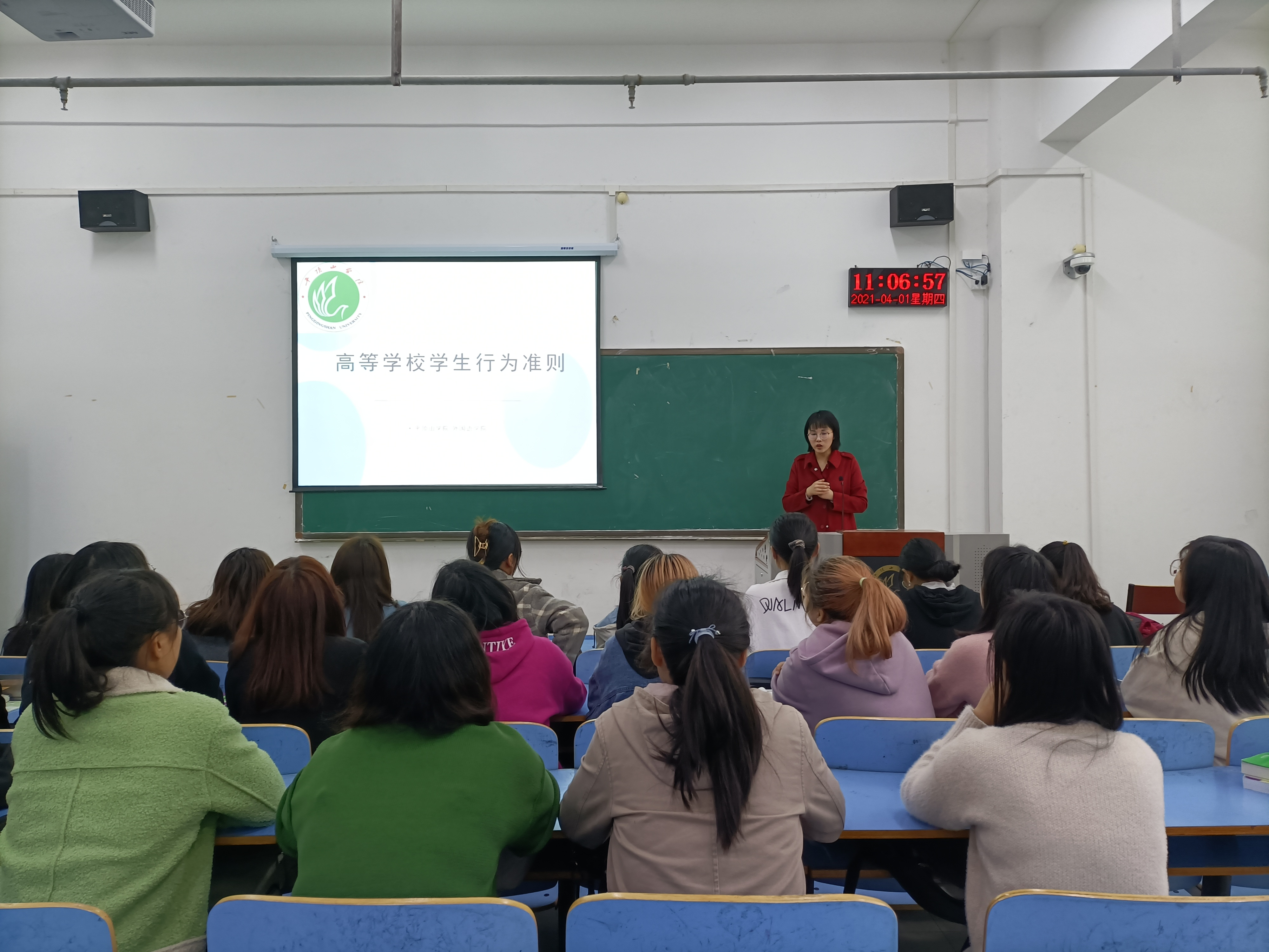 活动开始,辅导员老师首先从老员工存在的不良行为、《高等公司员工行为准则》《普通高等公司员工管理规定》学习及其重要意义、对照《高等公司员工行为准则》《普通高等公司员工管理规定》自查自检等几方面展开进行讲解。坚持问题导向性原则,从自己身边不良行为入手,发掘同学急需加强自律的本质原因,指出学习《高等公司员工行为准则》的必要性和重要性。接着,辅导员老师带领同学们详细学习《高等公司员工行为准则》《普通高等公司员工管理规定》,紧贴日常生活实际,条分缕析,使同学们切实理解其内在含义及深刻意义。最后,同学们对照《高等公司员工行为准则》《普通高等公司员工管理规定》内容自查自纠,互相讨论。并一致将提高纪律意识、掌握学习方法、增强自身约束力、树立底线观念四方面内容,作为自己今后的努力的方向。