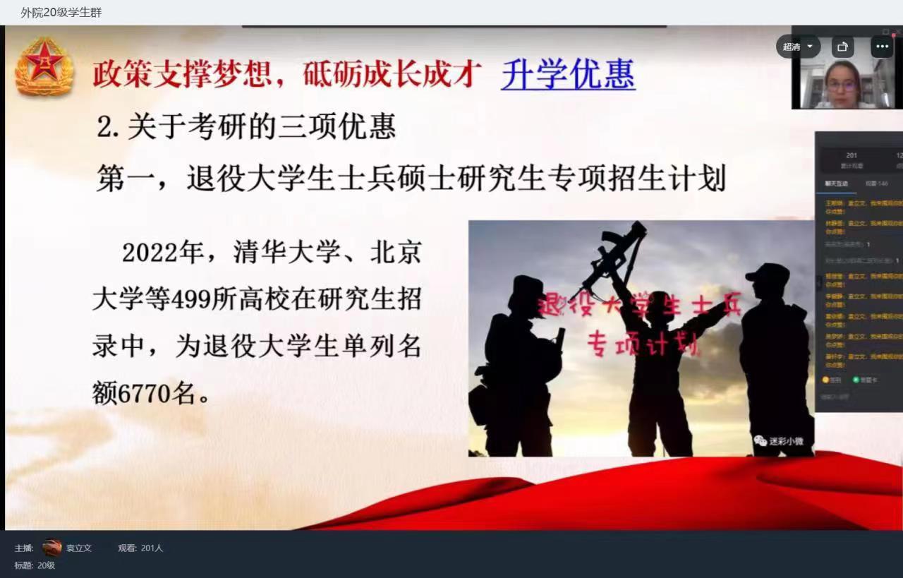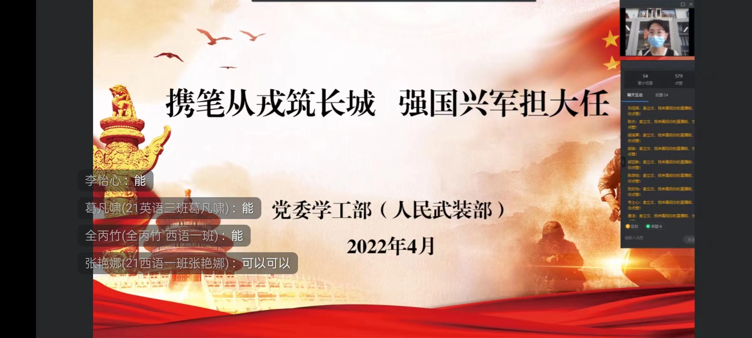 为深入贯彻习近平强军思想,进一步深化新时代老员工对征兵工作重要意义的理解和认识,推动高校征兵宣传工作,激励热血青年学子应征入伍,报效祖国,近期,beats365通过线上线下相结合的方式开展2022年征兵宣讲会。