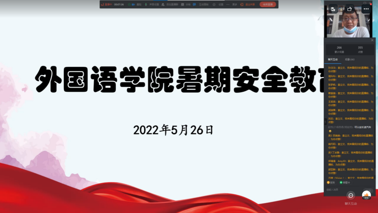 田占范强调,同学们在假期也不能降低安全防范意识,应做到及时关注全国疫情发展态势,严格遵守家乡疫情防控规定,同时,要提高防电信诈骗意识,避免财物损失。此外,田占范还提醒同学们,夏季来临,要注意假期的消防安全,在关注高温火情的同时也要注意家乡水情,培养防溺水观念。接着,贾宏春为同学们详细解读了公司的员工违纪处分方法,强调诚信的重要性,同学们应在考前认真复习,诚信考试,杜绝作弊。最后,贾宏春希望同学们做好考前复习,及时调整情绪,保持自信,以健康的心态应对考试。