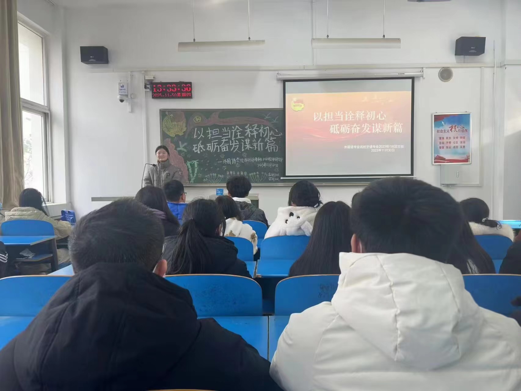 活动伊始,各支部团支书带领同学们齐唱了中国共产主义青年团团歌并与同学们共同学习了《青年要自觉践行社会主义核心价值观》、《不断书写奉献青春的时代篇章》等文献篇目。随后,各支部团支书从当代青年的责任与义务出发,向同学们强调了青年一代增强社会责任感、积极践行社会主义核心价值观的重要性,并表示,当代青年应全面提高自身素质,努力拼搏、勇于担当。接着,各支部团支书向同学们分享了夏思凝、王楚钦等优秀青年的奋斗事迹,激励同学们以优秀青年为榜样,从英雄人物身上汲取优秀精神力量,坚定理想信念,争做有担当、有作为的新时代青年。最后,各支部团支书鼓励同学们就青年应如何积极作为提出自己的看法,同学们踊跃发言并纷纷表示,在今后的学习与生活中会努力提升知识水平和实践能力,在实践中壮筋骨、长才干,在创新创造中锤炼本领、开创未来。