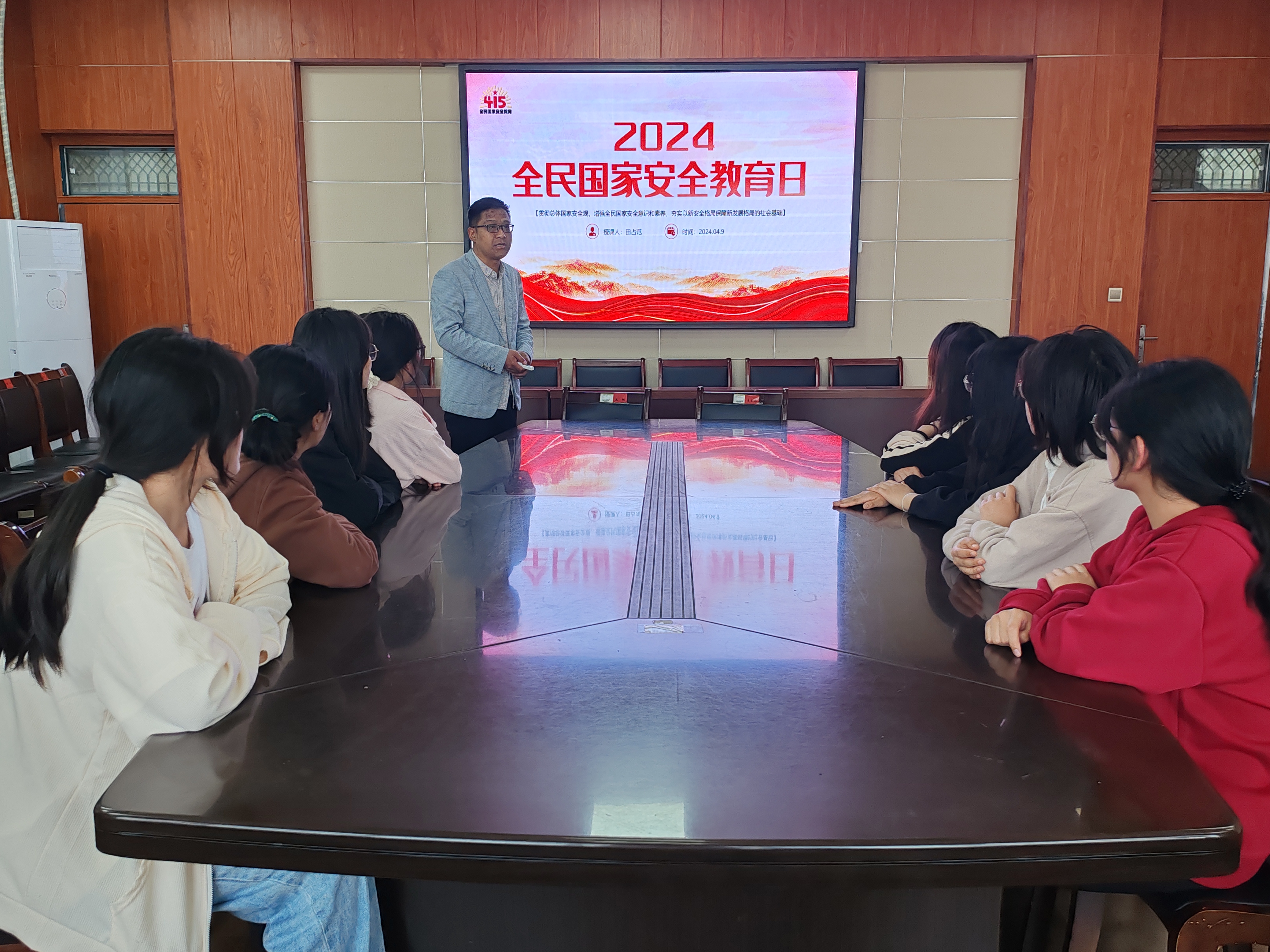 会议伊始,田占范从何为国家安全、当前国际社会的形势、国家安全观三个方面展开,向同学们详细讲解了国家安全与个人成长和社会发展的关系,帮助同学们对国家安全有了更加深刻的认识。在国家安全观方面,田占范讲到,维护国家的利益和安全是每个公民的义务,任何人在任何情况下都不得做有损国家安全的事情,并应自觉与一切损害国家安全的行为作斗争。接着,田占范就如何做好身边的国家安全防范方面展开讲述,并以实际案例为依据,向同学们强调了国家安全教育的重要性,让同学们深刻认识到维护国家安全是每个中国人义不容辞的责任。最后,田占范号召同学们要提高国家安全意识和忧患意识,自觉维护国家安全,坚定政治立场、提高政治站位、筑牢政治底线,注意自身言行举止,不泄露任何可能损害国家安全的信息,为维护国家安全贡献自己的力量。