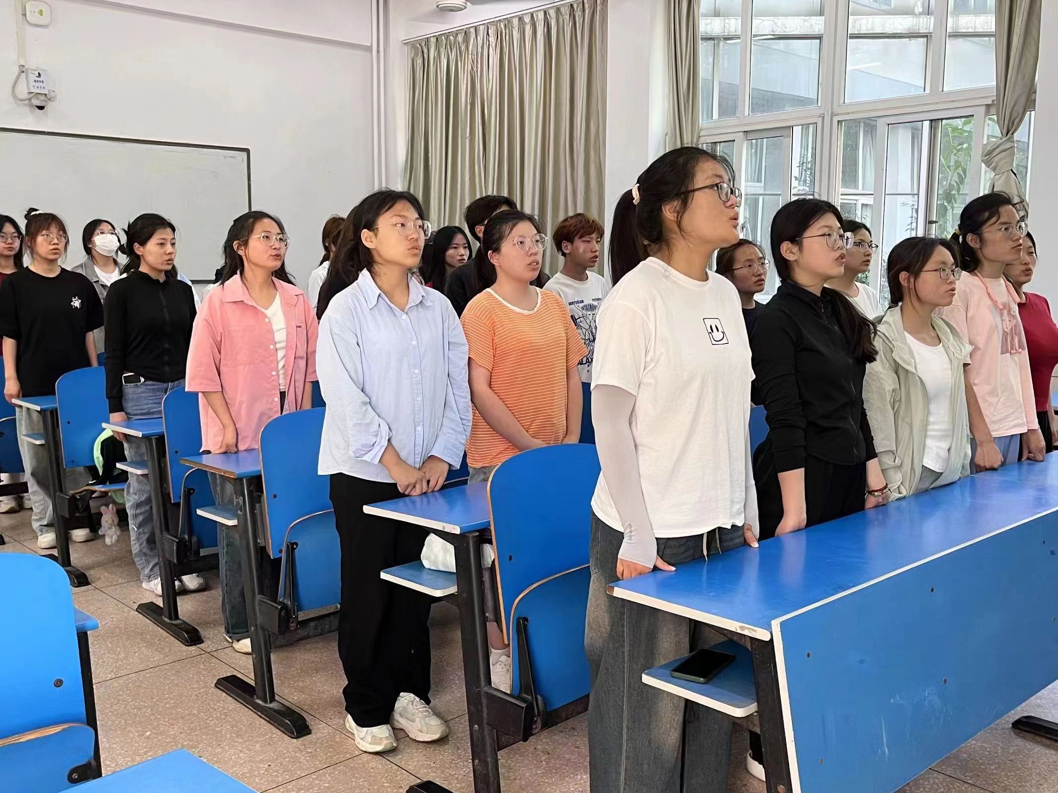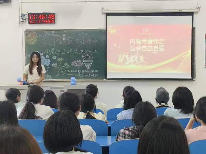活动伊始,各支部团支书带领同学们齐唱了中国共产主义青年团团歌,并与同学们共同学习了《为中国式现代化挺膺担当——习近平总书记的殷切寄语激励广大青年奋斗逐梦》与《“奋斗是青春最亮丽的底色”——总书记激励青年奋斗拼搏》等内容,帮助同学们深刻认识到自己作为新时代青年所肩负的历史使命和责任担当,并鼓励同学们发奋图强,为社会的发展和进步贡献青春力量。接着,各支部团支书以《何以青年》、《抗战中的文艺》等五四历史影片展开,激励同学们学习先辈们为国家富强和民族振兴而奋斗的崇高精神,并以优秀英雄精神为指引,坚定理想信念,争做新时代有为青年。最后,各支部团支书与同学们分享了习近平总书记五四重要寄语精神的具体内容,并鼓励同学们积极发表自己的感悟。同学们纷纷表示,在今后的学习生活中,会以五四精神为指引,脚踏实地,为实现中华民族伟大复兴的中国梦贡献自己的青春力量。