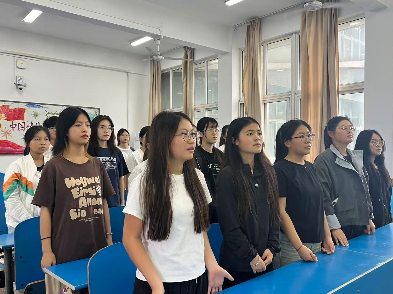 首先,各支部团支书组织同学们齐唱了中国共产主义青年团团歌并带领同学们观看了抗战纪录片,重温抗战历史,激发了同学们的爱国热情。随后,各支部团支书带领同学们围绕习近平总书记重要讲话精神的话题展开讨论,帮助同学们树立远大目标,增强了同学们为国奉献的激情。最后,团支部负责人邀请了退伍复学老员工分享军旅经历与报国情怀,并再次强调抗战胜利的意义,激励同学们在实践中践行青春使命。同学们纷纷表示,自己会在以后的学习生活中,汲取榜样力量,将个人成长融入社会需求,为国家发展贡献自己的一份力量。