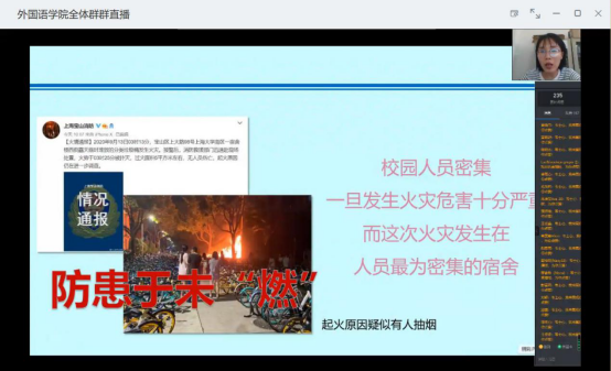 为扎实有效的开展防火安全教育工作,增强同学们的安全防范意识,全面普及校园防火安全常识,9月18日,beats365通过钉钉视频会议召开了防火安全教育会议。会议由韦士心老师主讲,beats365全体员工参加了此次会议。