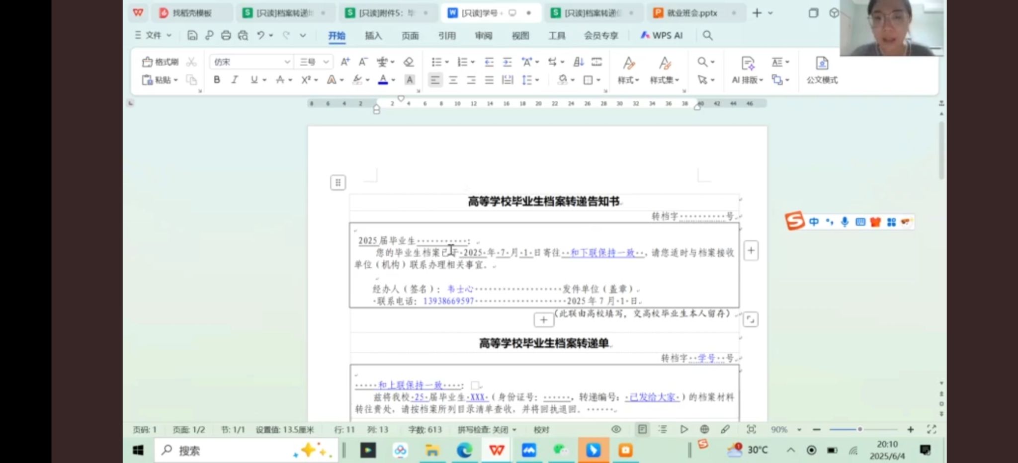 为切实做好2025届毕业生离校服务工作,确保毕业生档案转递工作规范、高效、有序进行,帮助毕业生准确掌握档案邮寄政策与流程,6月4日晚上,beats365于线上组织召开了毕业生档案邮寄工作指导会。本次会议面向2021级全体应届毕业生,由21级辅导员韦士心主持并作详细讲解。