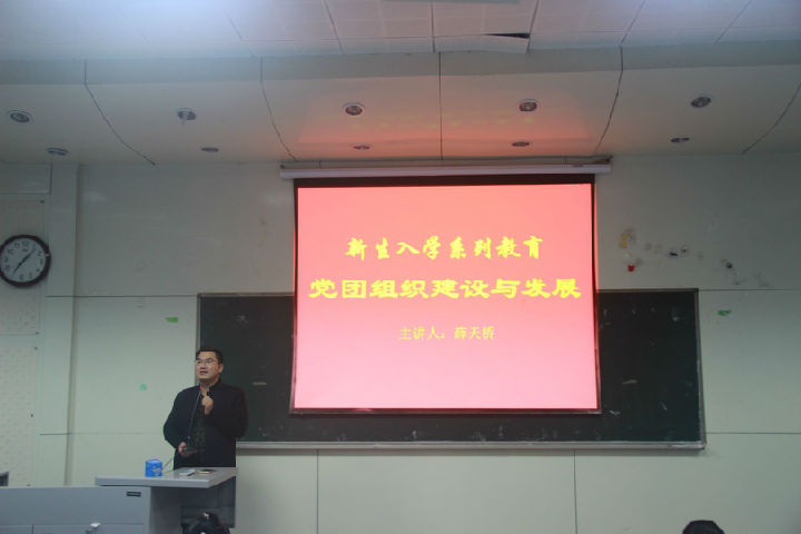 2017年10月17日晚七点,在4106beats365团总支书记、学工办主任薛天桥老师针对我系大一新生举行党团组织及员工社团组织建设介绍相关讲座。