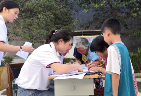 圈李村村民对此次支教活动十分支持,他们的热情也感染着志愿者们。在招生仪式开始前很多家长早早等候在校门口,积极为孩子报名。同时,家长们积极配合志愿者工作,签订安全协议书。志愿者们耐心告知前来报名的家长们此次支教活动具体课程安排和时间安排,并准确登记员工及家长信息,前来报名的家长们和孩子们的脸上都洋溢着快乐的笑容。志愿者们各司其职,组织有序,招生活动进展迅速且顺利。