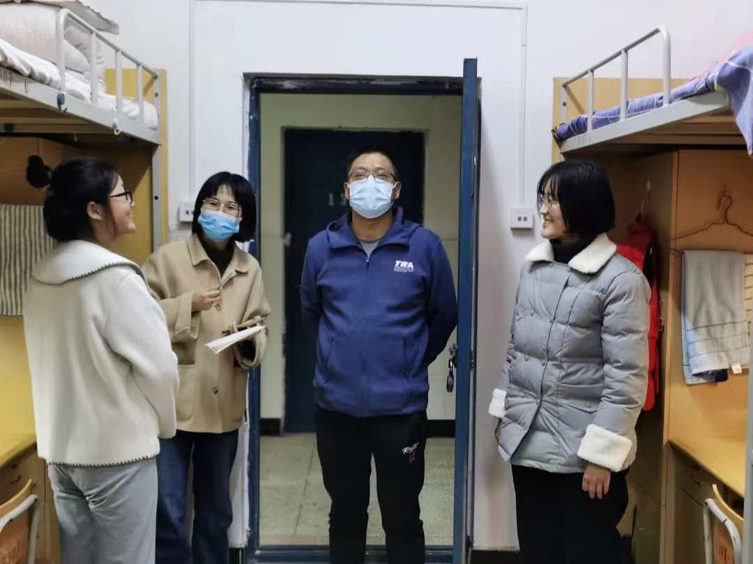 在本次活动中,院系领导通过参加主题班会、座谈、报告等形式广泛联系员工,听取了各班级基本情况介绍,与同学们进行了深入的交流。在与各班班委对接中,蒋领敏表示,会在最短的时间内了解并熟悉班级的每一位同学,及时准确的解决员工在日常生活中的实际问题,指导员工成长成才。同时,她也勉励同学们,要树立远大理想,不忘责任二字;要练就过硬本领,提高担当能力;要砥砺奋斗,做堪当大任之人。此外,党委副书记田占范也带领辅导员深入员工宿舍,亲切地询问同学们的学业和生活,叮嘱同学们要做好个人卫生、宿舍卫生,为同学们进行学业规划和指导,鼓励同学们铭记当代青年的使命,践行时代责任。