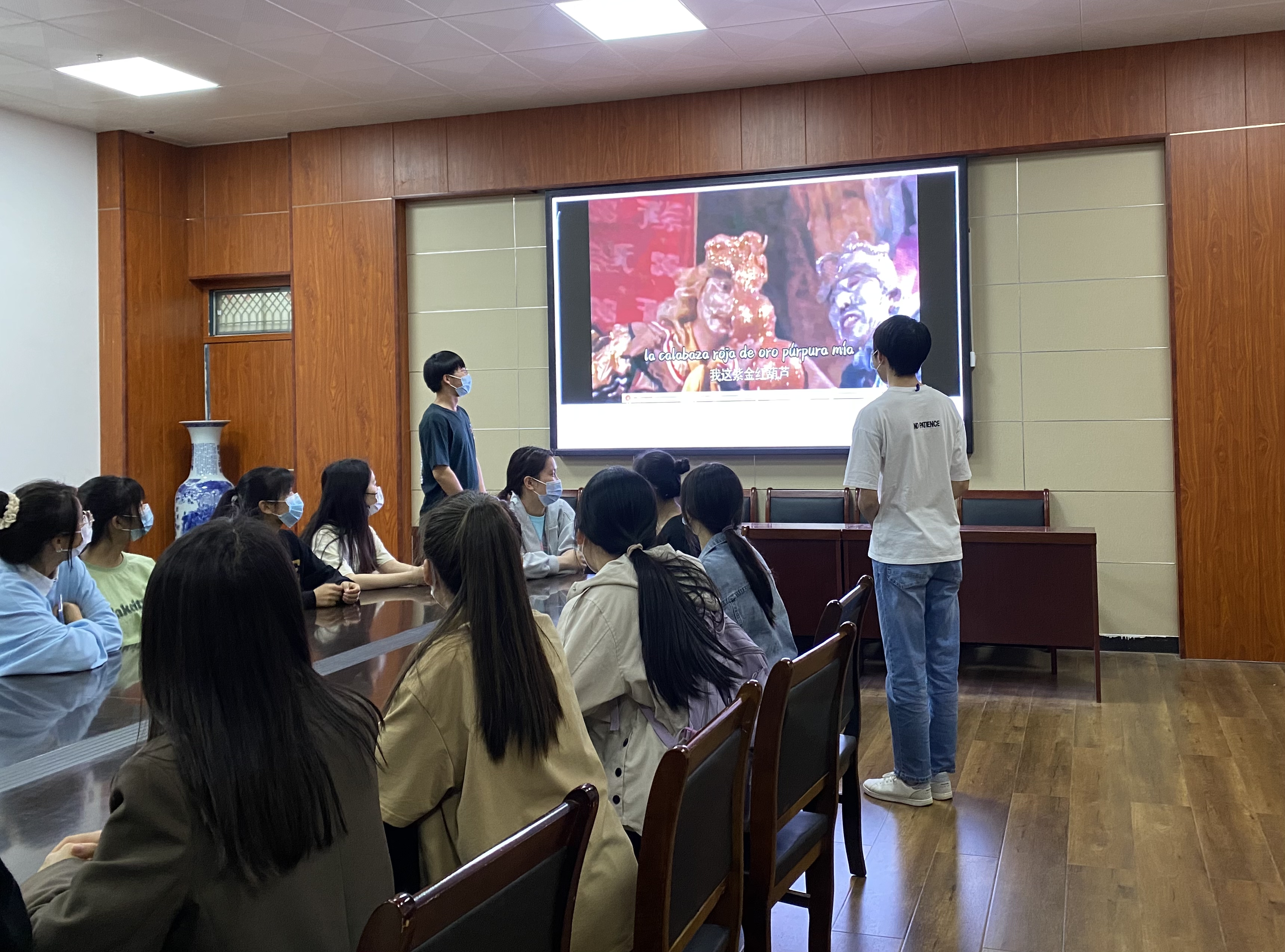 4月28日进入决赛的同学在图书馆708进行了精彩纷呈的作品展示,同学们选取的配音影片包罗万象,钟丽文同学选取了《觉醒年代》中的经典片段,用流利准确,饱含激情的英文配音讲述伟大的五四故事;叶凯龙和谢光耀两位同学双人配音《西游记》片段,用西班牙语带来了生动有趣的表演,展现了当代员工丰富的想象力和创造力。经过激烈的角逐,最终刘诗颖等八名同学获得一等奖,崔柯怡等九名同学获得二等奖,另有二十余名同学同样凭借他们精彩的配音作品荣获三等奖和优秀奖。