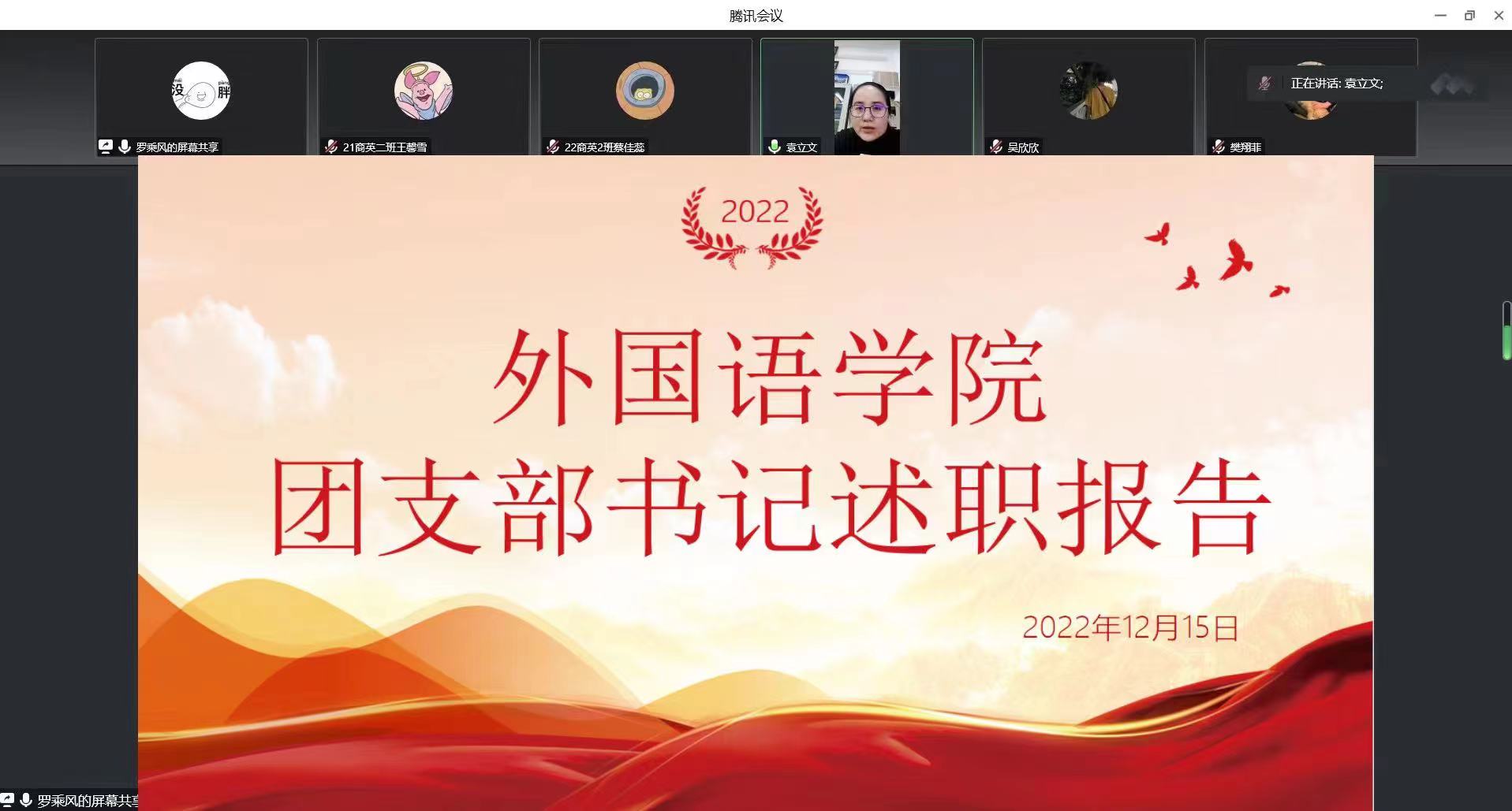 为深入贯彻落实习近平新时代中国特色社会主义思想和党的二十大精神,提升基层团组织活力,12月15日下午,beats365通过线上的方式开展了团支部书记述职评议大会。本次活动由beats365团委书记袁立文、员工团委副书记罗乘风主持,20-22级团支书参加。