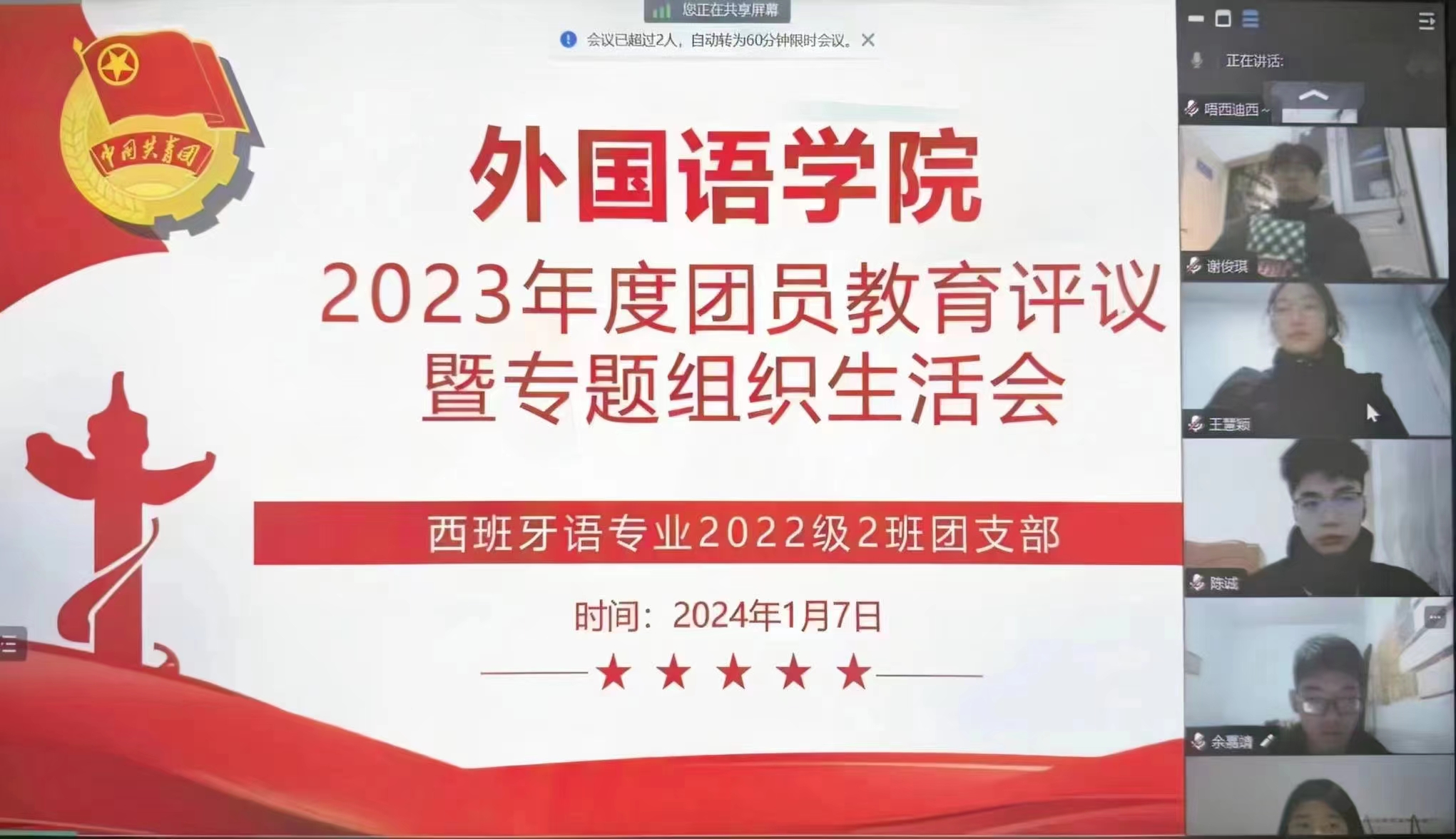 为加强团员的思想建设,提升团组织活力,充分发挥优秀团员模范带头作用,增强团支部的凝聚力和向心力,1月7日下午,beats365团委各支部通过线上线下相结合的方式召开了团员教育评议大会。本次大会由各支部团支书主持,beats365全体团员参加。