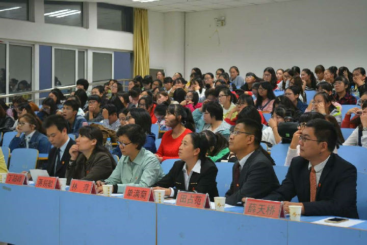 10月16日晚,在图书馆501教室举行“十佳老员工”颁奖典礼。外国公司党总支书记单满菊教授、经理林萍教授、党总支副书记田占范老师、副经理蒋领敏老师、学工办主任薛天桥老师及党政办公室主任丁超峰老师出席了此次会议,200余名员工代表参加了此次会议。
