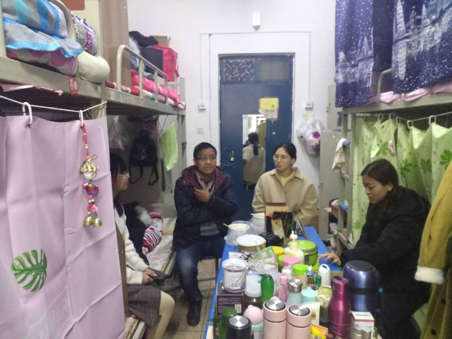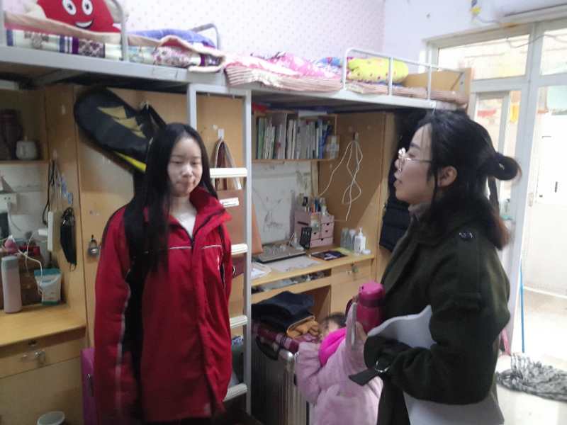 为确保公司研考期间安全平稳、加强对研考期间人员的管理,进一步排查员工宿舍安全隐患,1222、23日下,在各年级辅导员随同下,党总支副书记田占范深入员工宿舍,检查宿舍安全问题,了解员工期末温书情况。
