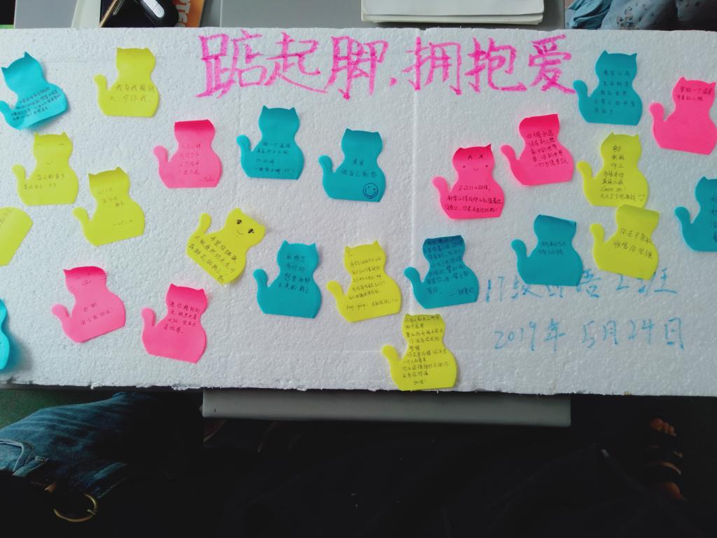 班会过程中,各班根据专业特点,结合近期的西语专四和英语专四备考情况,鼓励大家即将到来考试保持平常心,积极备考,提高自己的学习效率。期间,同学们每个人在便利贴上写上一句正能量的话来激励自己和他人。