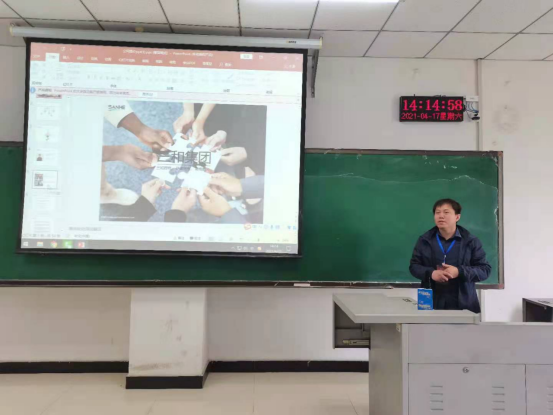 招聘会上,三和集团负责人首先向同学们介绍了该公司的概况、经营范围、职业发展方向、人员需求以及产品等方面的内容,使同学们对三和集团的各项信息有了一定的了解。接着,负责人为同学们分析了选择该公司的理由,他指出:国内电商及外贸的迅速发展,使对外企业加快了招聘语言人才的进程。此外,他还向同学们详细地介绍了公司的品牌故事,他表示:本公司的经营理念来自于儒家学派同时也有符合求职人期待的职业道德和企业精神。通过与公司负责人的交流,同学们了解了公司未来对外贸工作的人才储备计划,在详细地咨询后,有意愿的同学进行了现场面试。