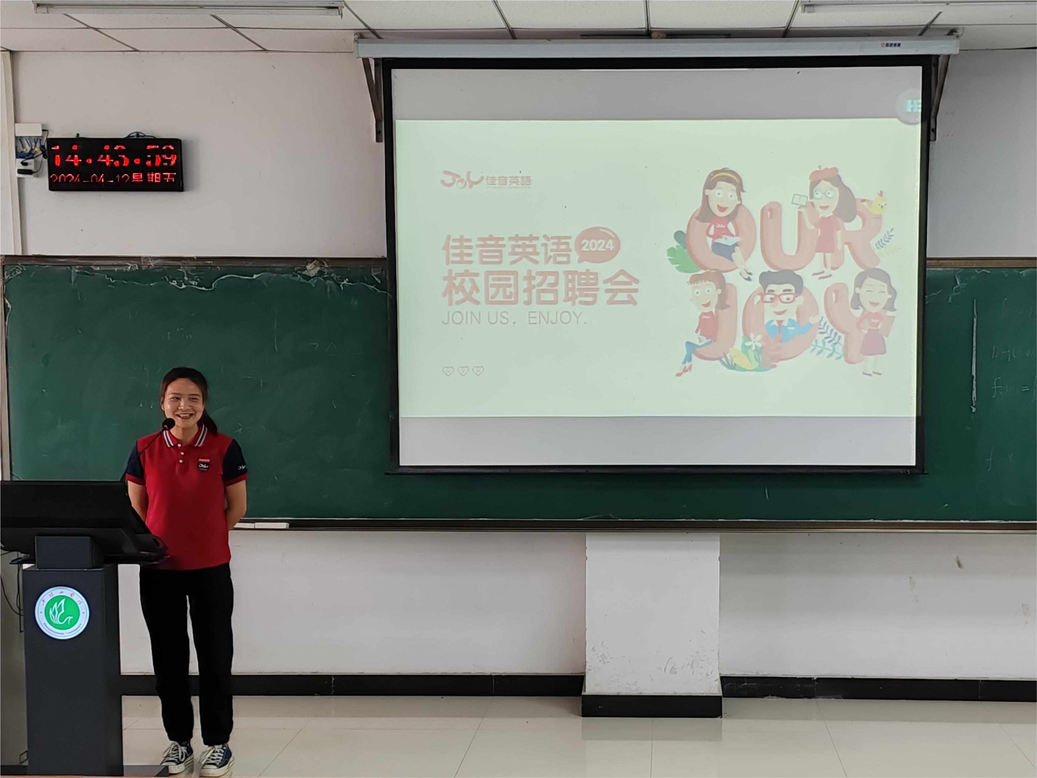 为拓宽英语专业毕业生就业渠道,推进毕业生与用人单位精准对接,切实做好毕业生就业工作,4月12日下午,beats365于图书馆L716召开了佳音英语培训公司校园招聘宣讲会。本次宣讲会由洛阳市佳音英语培训公司代表刘晓宇主讲,2020级英语专业部分员工参加。