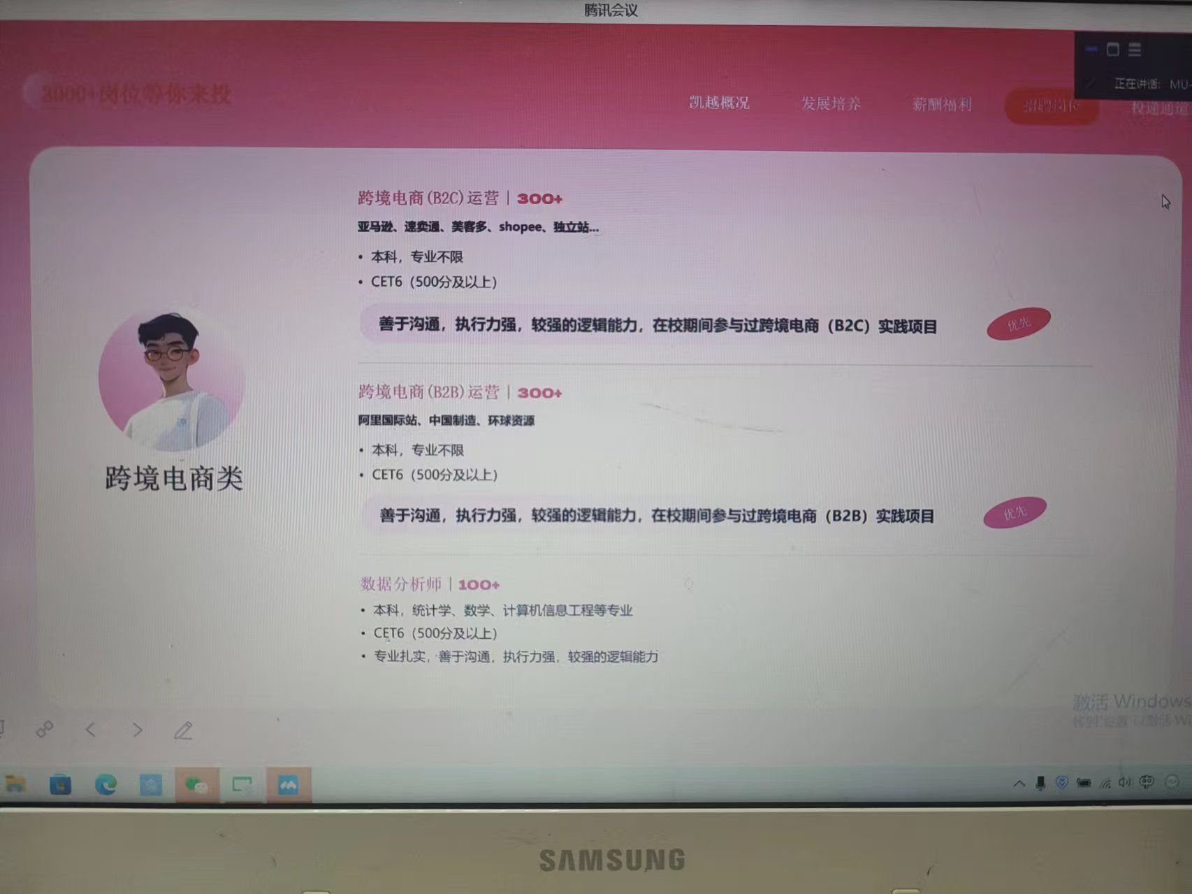 为拓宽beats365毕业生就业渠道,把握优质就业岗位,进一步推动和提升员工就业质量,9月25日下午,beats365于腾讯会议线上召开了凯越集团校园招聘宣讲会。本次宣讲会由凯越集团义乌分公司人事经理郑浩强主讲,beats365全体毕业生参加。