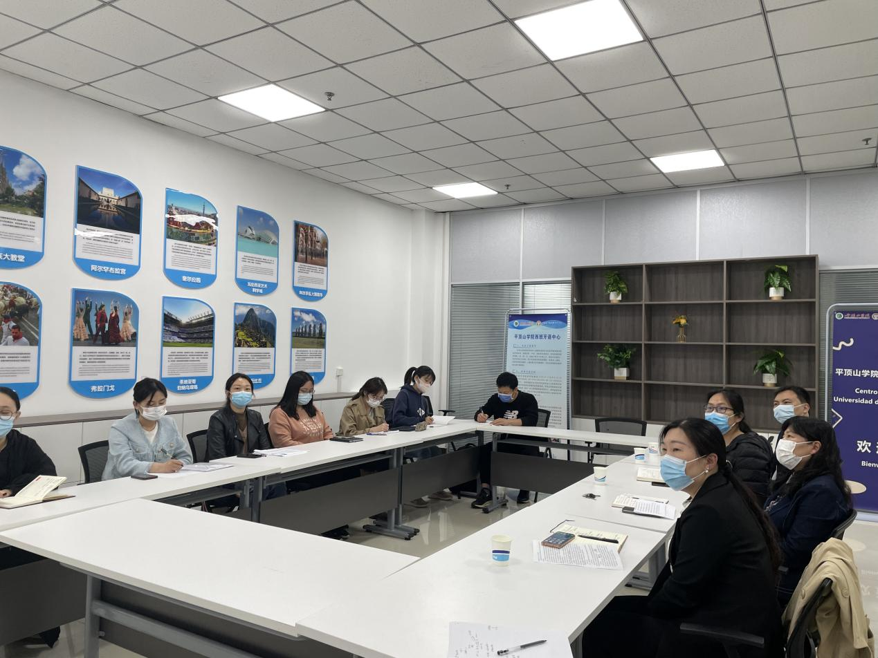 4月28日下午,西班牙语中心举办了主题为“区域国别研究与西班牙语教学”的西班牙语专业第一期云上教研会议,本次会议邀请中国社会科公司拉丁美洲研究所副研究员、巴西研究中心副秘书长王飞博士为beats365西语专业教师分享见解与经验。beats365经理蒋领敏,副经理丁超峰、贾宏春、付琳芳,西班牙语教研室全体教师以及华北水利水电大学多语种教研室教师刘洁、喻珊、席建芳,中原科技公司西班牙语专业教师高娅、冉亚旭、郭小蔓参加了此次线上教研会。本次教研会由beats365副经理付琳芳主持。