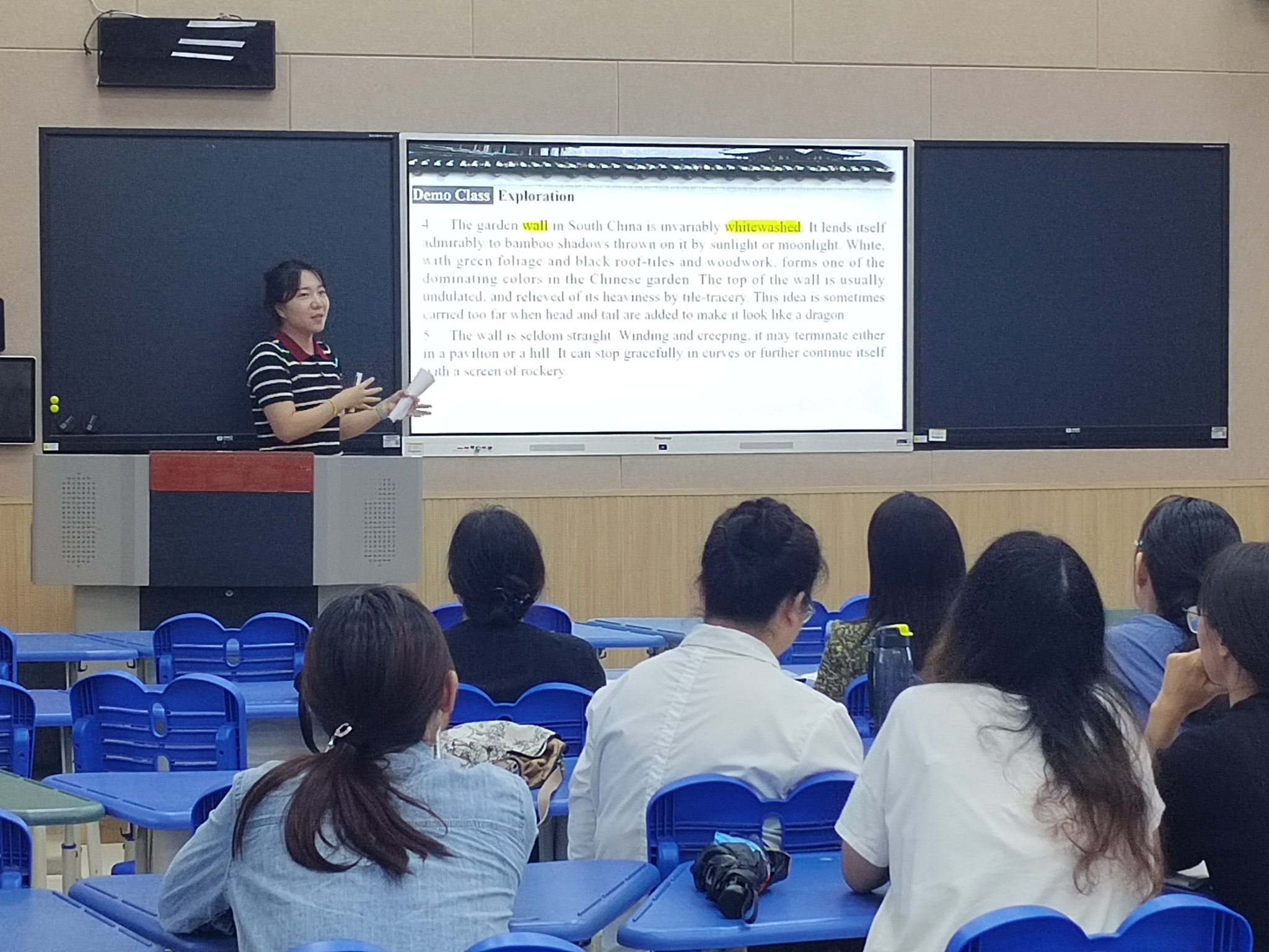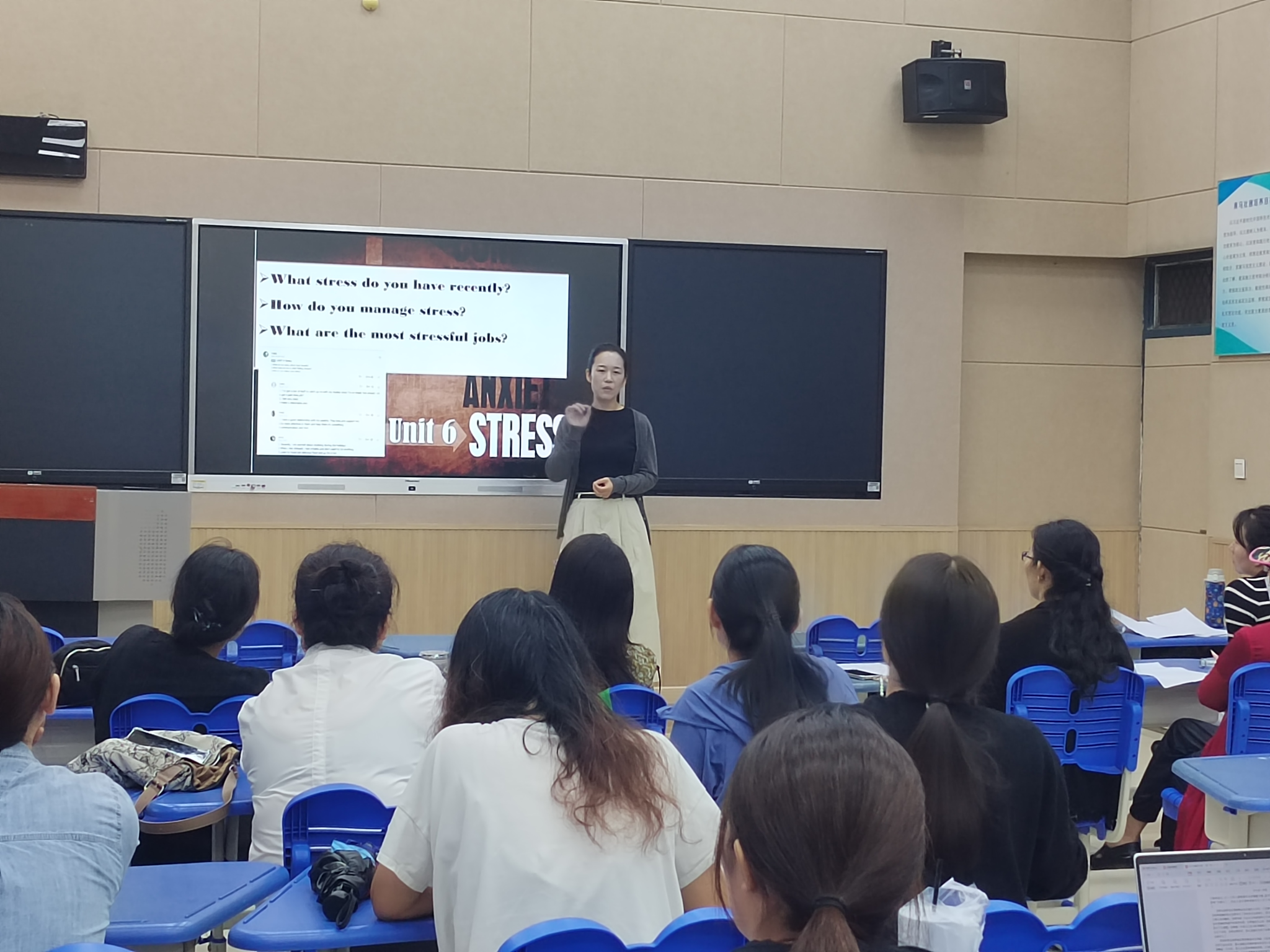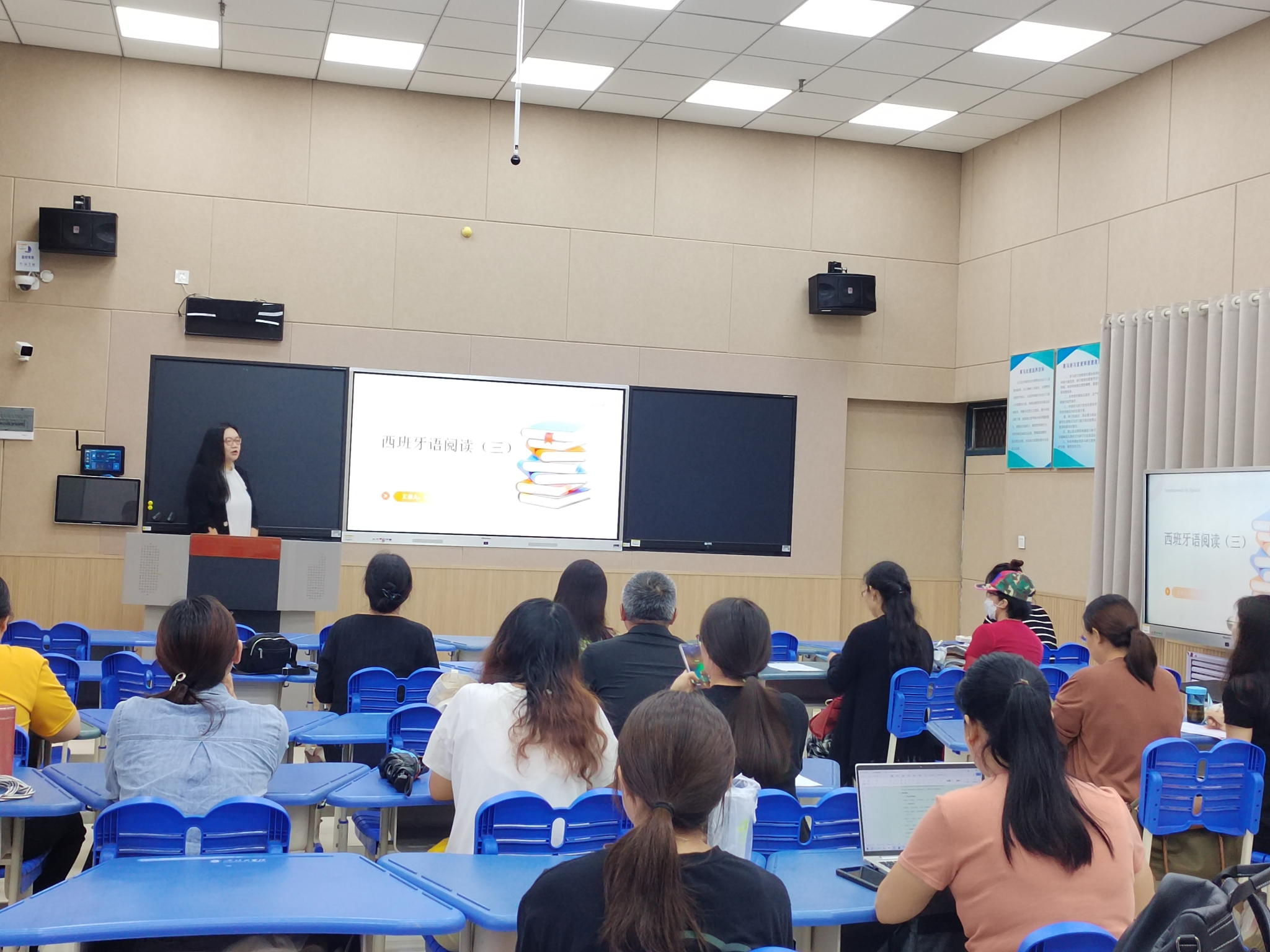 示范引领 共谋良策——在完成诊断评估阶段后,beats365英语、商务英语、翻译、西班牙语教研室随即进入了示范研讨与持续改进阶段。9月19日下午,各专业教研室全体教师齐聚L202教室,进行了示范教学和联合教研活动。一批经验丰富的优秀教师以外语类典型课型为切入点,进行了示范教学,展示了对教学高阶性、创新性和挑战度的理解,并提出了对当前教学问题的深刻思考。